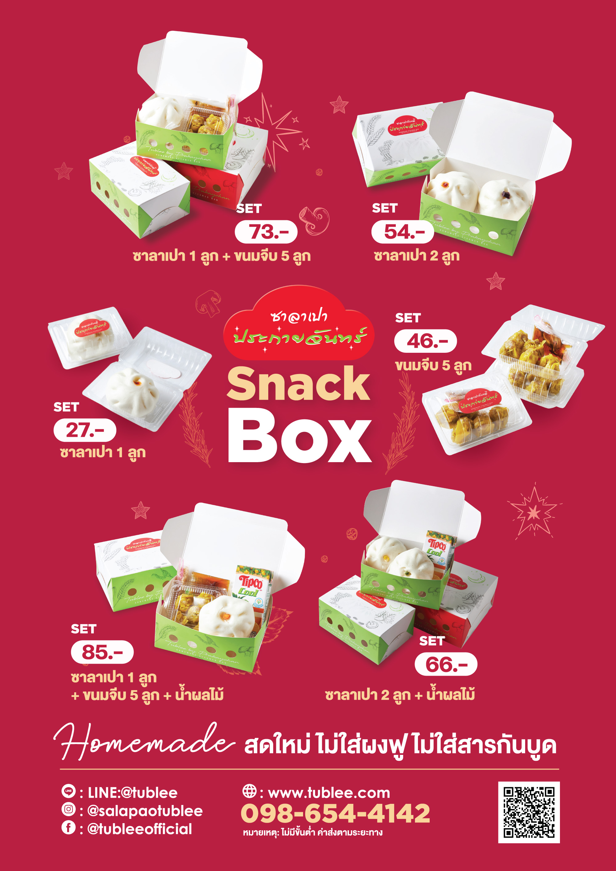 คุณลูกค้าสามารถเลือกชุดอาหารว่างที่ต้องการตามงบประมาณ และแจ้งรายละเอียดการสั่งผ่าน LINE: @tublee