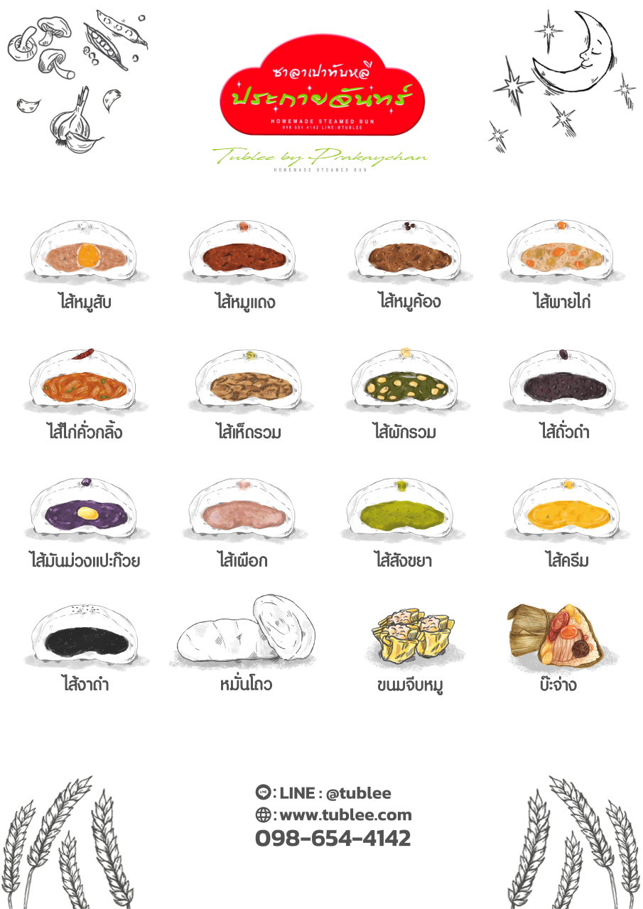 ซาลาเปา 13 ไส้คาวหวาน ขนมจีบหมูรสเข้ม และบ๊ะจ่างเครื่องแน่นพร้อมสำหรับลูกค้าที่น่ารักของเราทุกท่าน สินค้าของทางเราล้วนเป็นแบบโฮมเมด สดใหม่ ไม่ใส่ผงฟู ไม่ใส่สารกันบูด