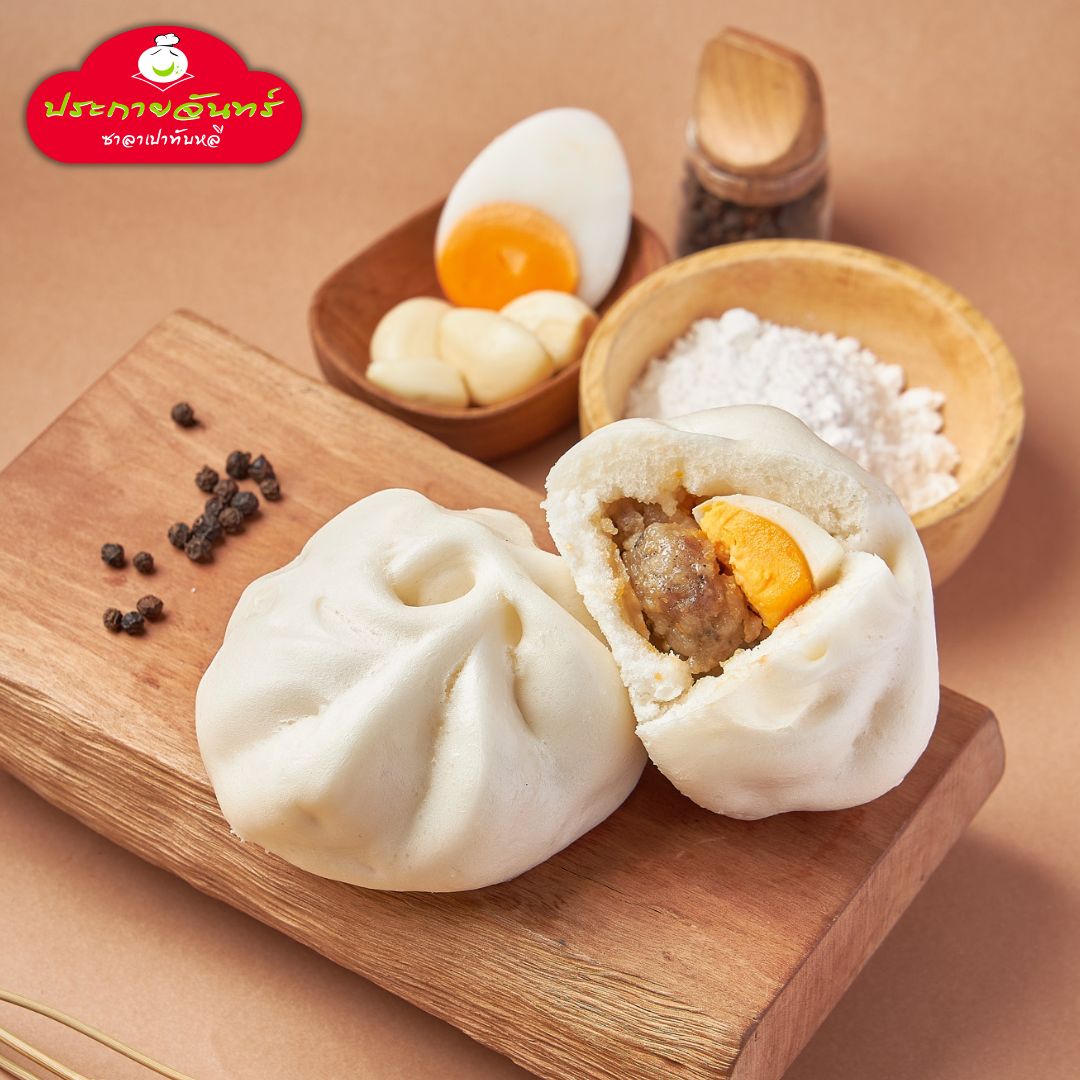 ซาลาเปาไส้หมูแดง หมูสับ หมูค้อง ผักรวม พายไก่ ครีม สังขยาใบเตยสด หรือ มันม่วงแปะก๊วย
